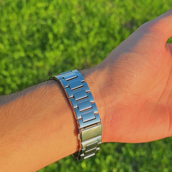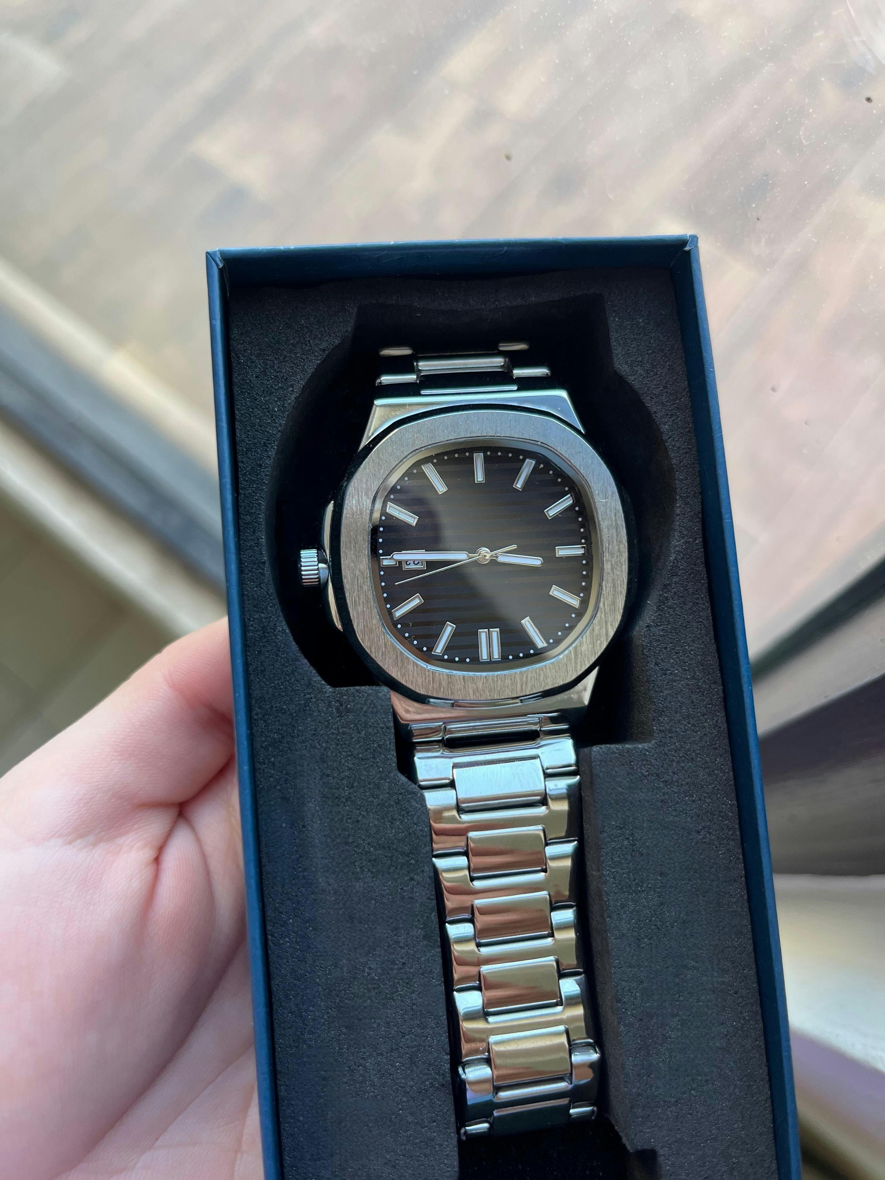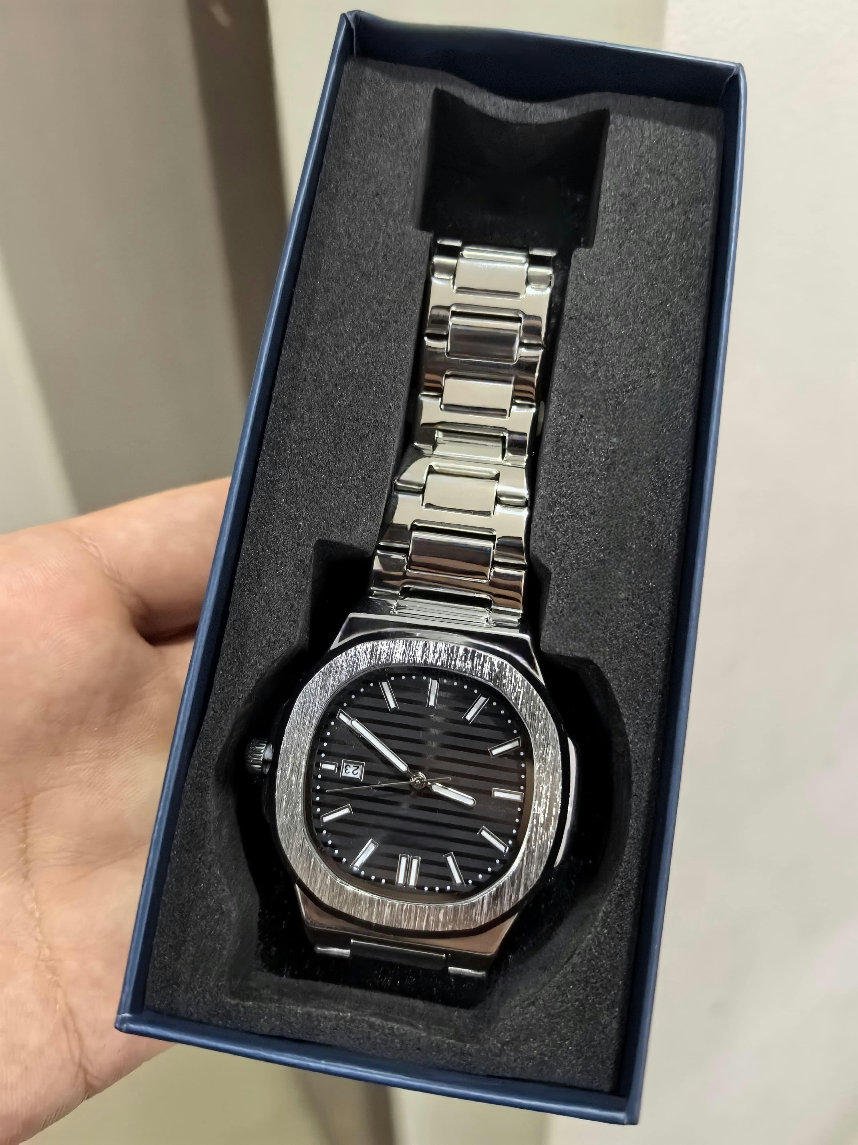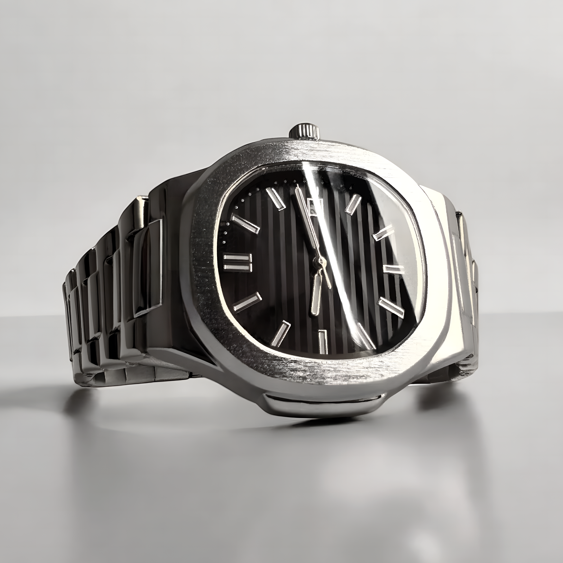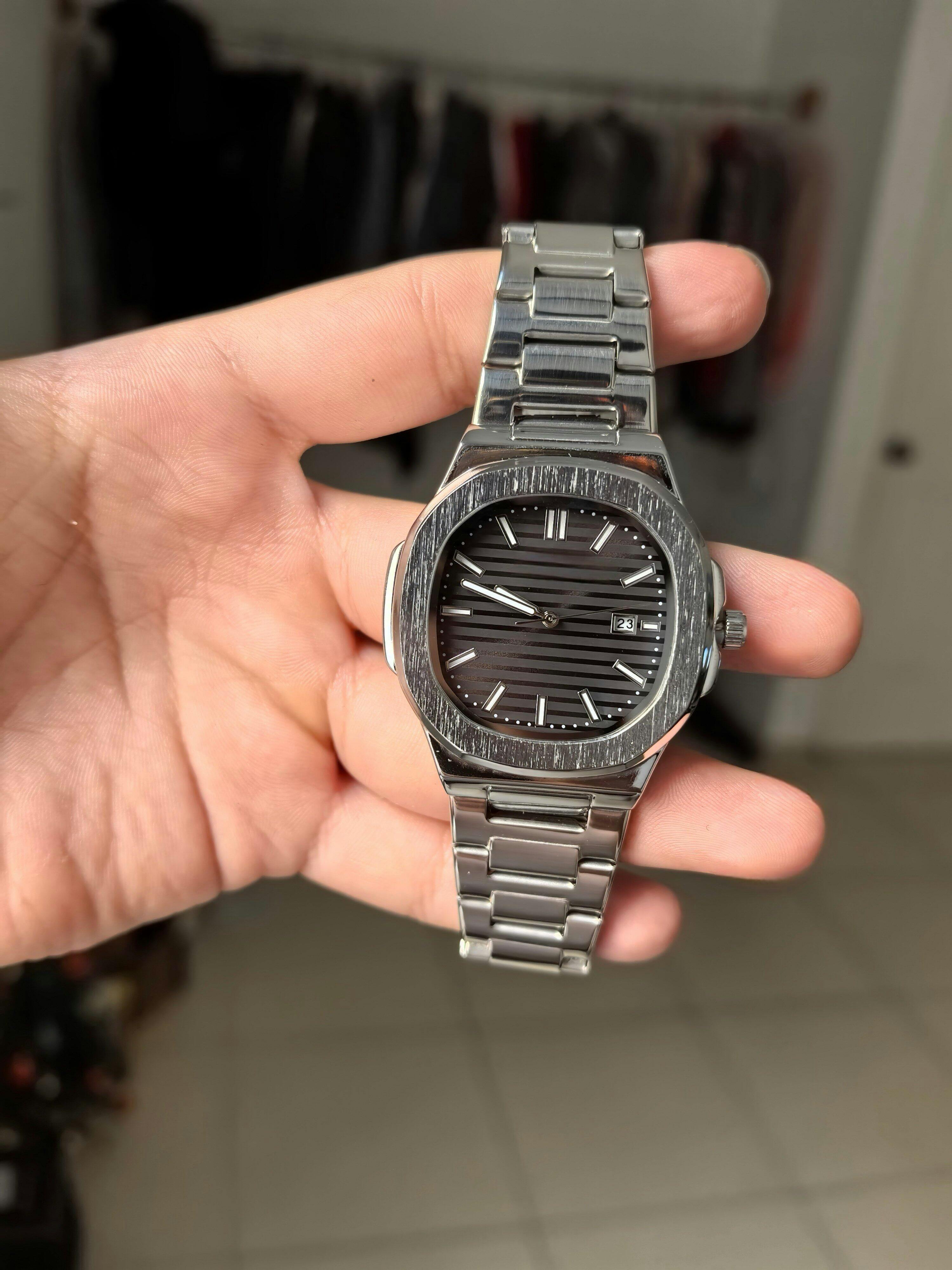 Aeternum Ferrum presenta un diseño elegante y moderno, fabricado en acero inoxidable de la más alta calidad con movimiento de cuarzo de alta precisión y resistencia al agua. Presenta una esfera negra texturizada con marcadores metálicos, función de fecha y brazalete a juego, ideal para uso diario o formal.