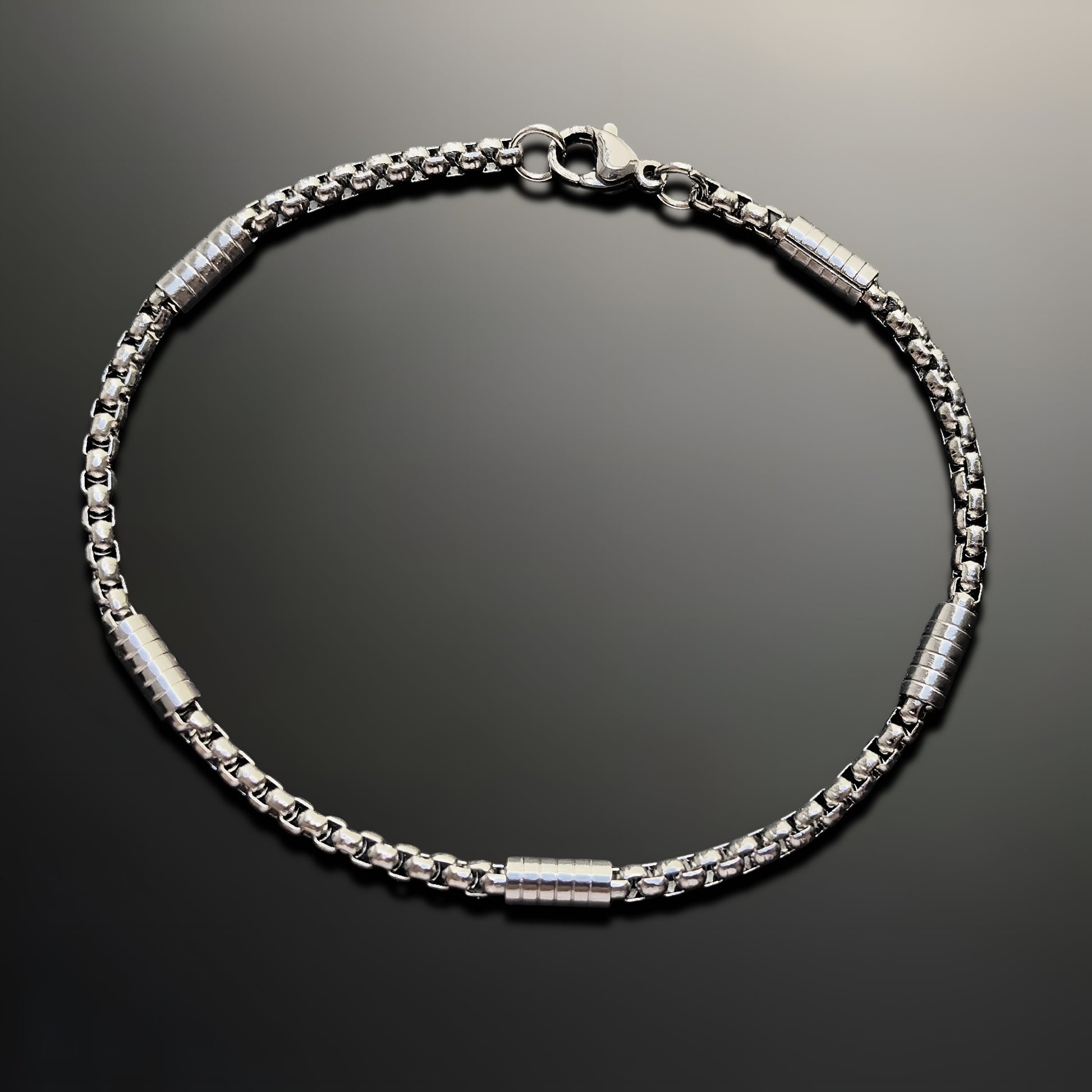 Esclava de Acero Inoxidable Trenzado Delgado con Barra
